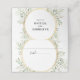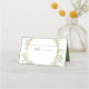 Elegant greenery wedding table place cards, featuring a classic white background, and delicate watercolor botanical greenery on a gold frame with space for a name and table number.
