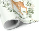 Elegant woodland themed wrapping paper featuring adorable watercolor illustration of a sweet baby deer and modern botanical greenery in green and gold. The text fields are fully editable. You can change the wording to suit your event, e.g. birthday, baby shower / sprinkle, baptism, christening, naming day, etc