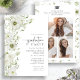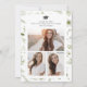 Elegant Greenery Graduation Party Invitation. Invite loved ones to celebrate your achievement with this stylish graduation party invitation for high school seniors and college graduates. Featuring a crisp white background and soft light grey text, this refined design is accented with soft and elegant botanicals in shades of sage, hunter, and forest green with chic and stylish boho ferns and delicate white florals, all hand-painted in beautiful watercolor. Whether hosting a lively summer gathering, a cosy fall party, or a sophisticated winter celebration, this invitation is perfect for any season. The back features a coordinating pattern and a beautifully arranged three-photo collage, allowing you to showcase special memories meaningfully. Elegant and personal, this invitation sets the perfect tone for a memorable celebration.
