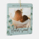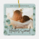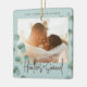 Create your own wedding keepsake with this mint green Elegant Greenery Merry and Married Photo Holiday Ceramic Ornament. This modern and chic design features eucalyptus branches watercolor illustrations and a stylish faux gold foil geometric photo frame. Add two custom photo on front and back, newlywed names and a personalised text. Show all your love with this one ok a kind custom ceramic ornament. perfect also as anniversary and engagement gift. Your girlfriend will love it! No minimum order.
