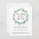 An elegant pregnancy announcement with a lovely watercolor floral wreath with eucalyptus leaves greenery and a modern trendy script typeface.