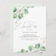 This elegant greenery sweet sixteen birthday invitation is perfect for a simple 16th birthday party. The modern elegant design features a natural botanical arrangement of eucalyptus, leaves and plants with a subtle mint green watercolor wash accent.
