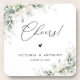 Elegant Greenery Wedding Cheers Square Coaster