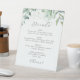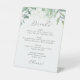 This elegant greenery wedding drinks menu sign is perfect for a simple wedding. The modern elegant design features a natural botanical arrangement of eucalyptus, leaves and plants with a subtle mint green watercolor wash accent.