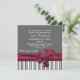 Stylish square party invitation done in a solid grey, on the top, and a grey and white striped pattern, on the bottom of the invitation. Graphics of a maroon satin like ribbon and bow stretches across the bottom, with white custom text ready to personalise for your special occasion. This size invitation requires extra postage if mailed in the U.S.