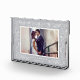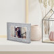 Create a beautiful wedding keepsake with this freestanding acrylic photo block. Design features your horizontal/landscape orientated photo surrounded by delicate leaves and branches in elegant pale grey and white. Personalise with your names and wedding date at the bottom in a chic mix of block and script lettering.