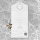 ALSO AVAILABLE WITH OR WITHOUT DINNER CHOICES. Elevate your special day with our elegant, vintage Baroque-style wedding invitation, a masterpiece of timeless elegance. Featuring a delicate French light grey chinoiserie crest with delicate line art ribbons and filigree on a pristine white background, this design exudes classic charm and sophistication. Its simplicity highlights its refined details, creating a design as graceful as your love story. Perfect for those who cherish tradition and elegance. Created by Simply Farmhouse Press.