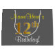 Elegant, Grey, Faux Gold 12th Birthday + Name Large Gift Bag