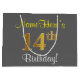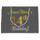 Elegant, Grey, Faux Gold 14th Birthday + Name Large Gift Bag
