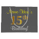 Elegant, Grey, Faux Gold 15th Birthday + Name Large Gift Bag