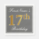 Elegant Grey, Faux Gold 17th Birthday; Custom Name Napkin