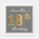 Elegant Grey, Faux Gold 18th Birthday; Custom Name Napkin