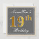Elegant, Grey, Faux Gold 19th Birthday + Name Invitation