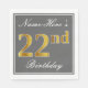 Elegant Grey, Faux Gold 22nd Birthday; Custom Name Napkin