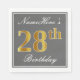 Elegant Grey, Faux Gold 28th Birthday; Custom Name Napkin