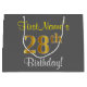 Elegant, Grey, Faux Gold 28th Birthday + Name Large Gift Bag