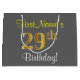 Elegant, Grey, Faux Gold 29th Birthday + Name Large Gift Bag