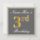 Elegant, Grey, Faux Gold 3rd Birthday; Custom Name Invitation