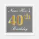Elegant Grey, Faux Gold 40th Birthday; Custom Name Napkin