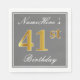 Elegant Grey, Faux Gold 41st Birthday; Custom Name Napkin