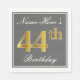 Elegant Grey, Faux Gold 44th Birthday; Custom Name Napkin