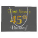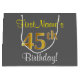 Elegant, Grey, Faux Gold 45th Birthday + Name Large Gift Bag