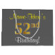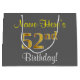 Elegant, Grey, Faux Gold 52nd Birthday + Name Large Gift Bag