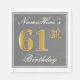 Elegant Grey, Faux Gold 61st Birthday; Custom Name Napkin