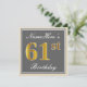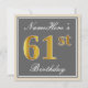 Elegant, Grey, Faux Gold 61st Birthday + Name Invitation