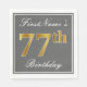 Elegant Grey, Faux Gold 77th Birthday; Custom Name Napkin