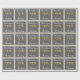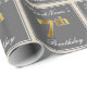 This simple and elegant wrapping paper design features a personalised message like "FirstName’s 7th Birthday" (with the "7th" having a faux/imitation gold-like colouring look) within a grey-coloured square area featuring a simple border outline. The name is in an elegant white-coloured script-like text, and can be customised. Wrapping paper like this could perhaps be used when wrapping birthday gifts for somebody who is celebrating their seventh birthday. [~Z0000222]