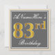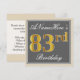 Elegant, Grey, Faux Gold 83rd Birthday + Name Invitation