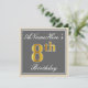 Elegant, Grey, Faux Gold 8th Birthday; Custom Name Invitation