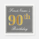 Elegant Grey, Faux Gold 90th Birthday; Custom Name Napkin