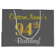 Elegant, Grey, Faux Gold 94th Birthday + Name Large Gift Bag