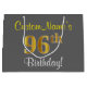 Elegant, Grey, Faux Gold 96th Birthday + Name Large Gift Bag