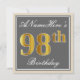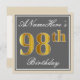 Elegant, Grey, Faux Gold 98th Birthday + Name Invitation