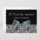 Elegant black and white leopard print hair and beauty salon appointment reminder postcards with a stylish grey ribbon tied into a chic bow. Personalise this animal print design by adding your boutique name and contact information. Flat printed image, not actual ribbon.