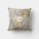 Elegant Grey Marble Monogram Faux Gold Glitter Cushion