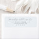 These return address labels feature a clean, elegant design with centred text elements on a white background. The layout includes a flowing cursive script for names and a formal serif typeface for the address and zip code, creating a sophisticated look. With a monochromatic dark grey colour palette, the design exudes simplicity and understated luxury, making it perfect for formal occasions. The generous spacing between lines enhances readability while maintaining an overall balanced composition.