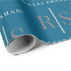 Elegant Grey Monogram & White Name, Blue Wrapping Paper