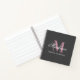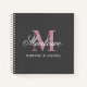 Stylish Monogram Dark Grey Pink White Script Name square notebook for your new home office, administrative and professional work, back to school, artwork sketches, recipe notes etc. Choose from a variety of insert types including wide rule, college rule, and blank for sketching.