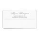 Modern shipping labels featuring a simple design with your business name in an elegant grey thin script font and two lines of text for your return address in a serif font, over a white background. A thin line divides the space below where you can handwrite your customer's address. These minimalist shipping labels are a great way to add a professional touch to your packages.