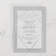 This elegant and modern graduation party invitation is ideal for a classy and formal event. It features a faux printed sparkly silver glitter confetti sprinkled over a thin geometric diamond and rectangle border with a dark grey thick border underneath and light grey fill. It's chic, luxurious, pretty, simple, and trendy; the perfect design for your special day.