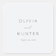 This square sticker features a minimalist and elegant design with a clean, uncluttered layout. The colour palette is soft, primarily using light grey text on a pale background to create a subtle contrast. The typography combines modern sans-serif fonts for the names with a cursive script for "and," adding a touch of personalisation, while a small serif font grounds the date at the bottom. The overall style is contemporary and sophisticated, perfect for formal occasions like weddings or engagements, conveying a mood of refined simplicity and understated elegance.