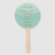 Simple, elegant, modern script grey and mint green wedding program hand fans with silver foil rope heart.