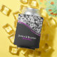 Monogrammed elegant dark grey and white floral damasks with metallic dynamic stripes in silver and hot pink purple.