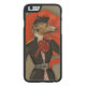 Elegant Greyhound and Red Umbrella Carved Wood iPhone Case