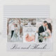 This elegant thank you card features four of your favourite wedding photos, on a chic grey colour with modern typography. There is an option to add a message to the back if you choose.