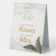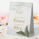 Elegant Greenery Gold Watercolor Guess How Many Kisses Bridal Shower Game Table Tent Sign.